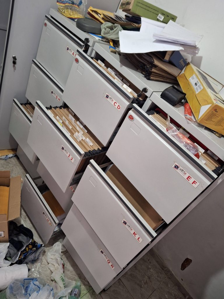 Até o momento só identificamos prejuízos de documentos administrativos, como recibos e comprovantes financeiros. Os documentos dos trabalhadores, principalmente os que envolvem processos judiciais estão seguros, pois eles são imediatamente digitalizados e anexados aos processos.